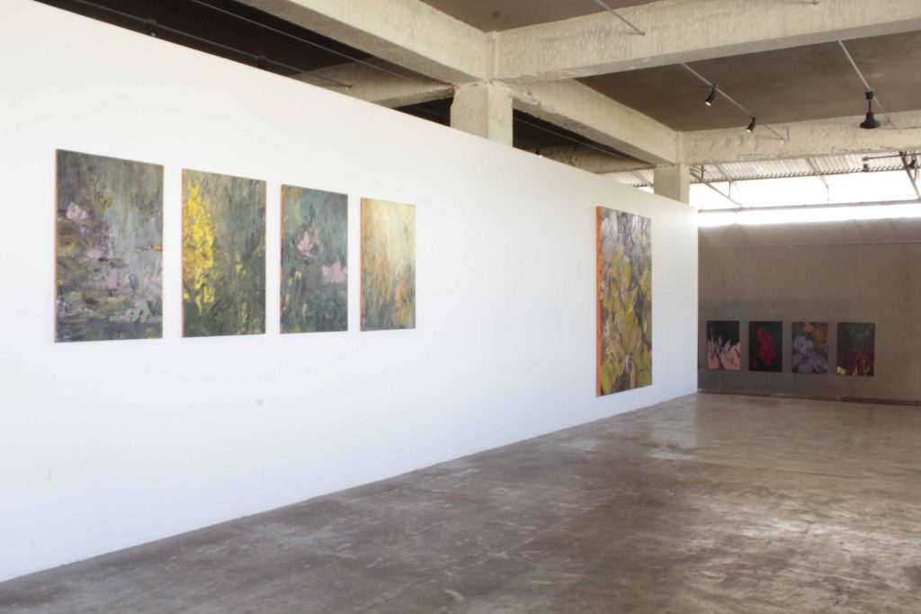 La duración efímera de una floración nocturna, el velo de una tormenta, el hallazgo de una espina, todo se convierte en pedazos de sus obras. Su técnica plástica se pone a prueba en cada cuadro, convirtiéndose textura y los incorpora en su obra, ensamblando momentos precisos sobre la tela con óleo y pinceles.